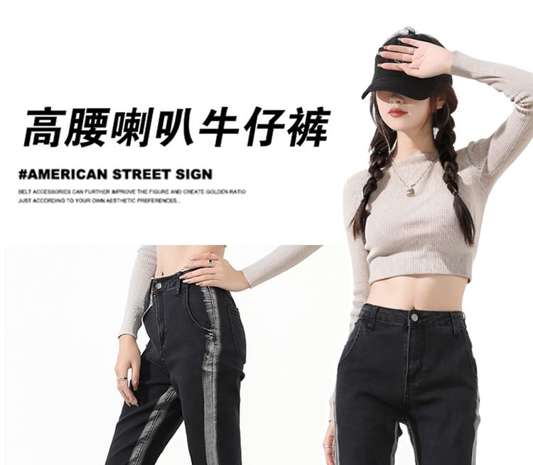 High Rise Striped Flared Jeans