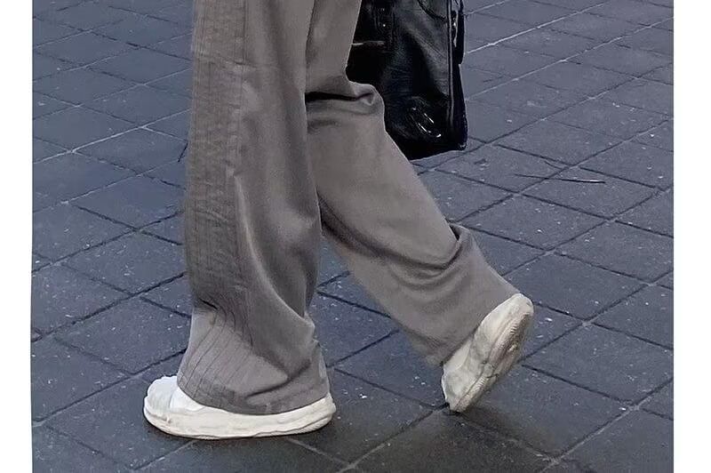 High Waist Plain Striped Loose-Fit Wide-Leg Sweatpants