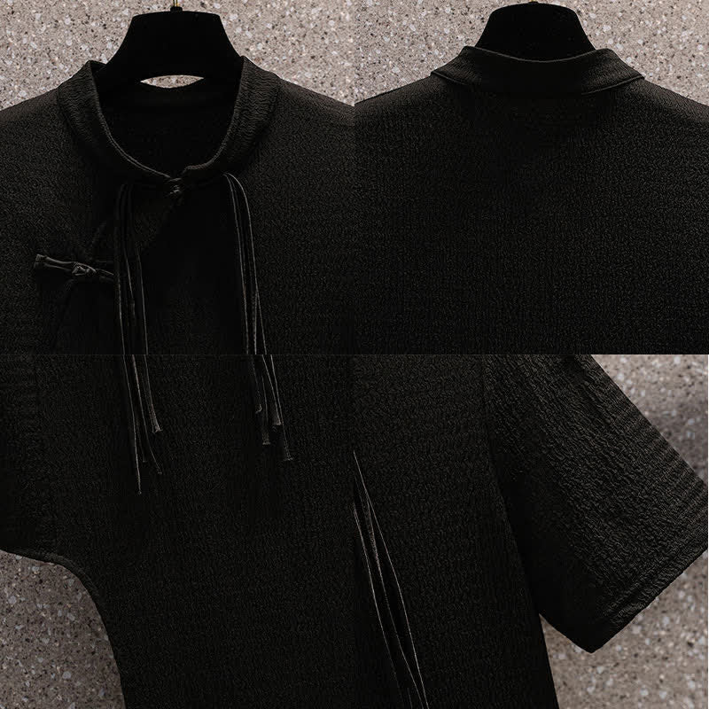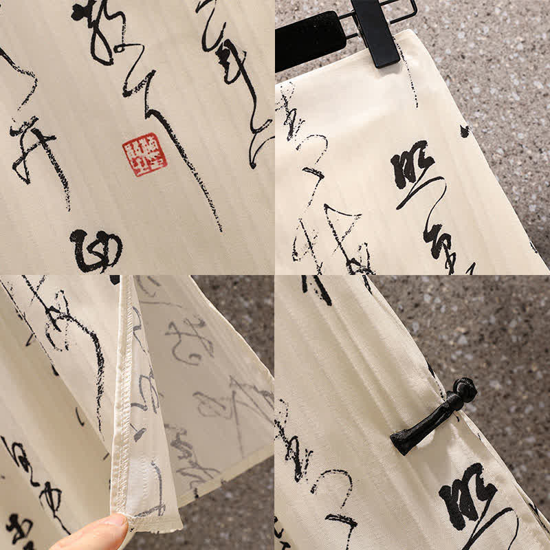 Irregular Buckle Qipao Top Character Print Split Skirt Set