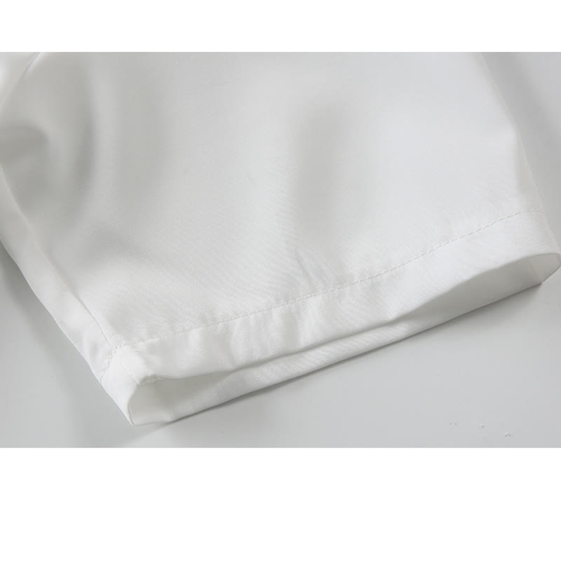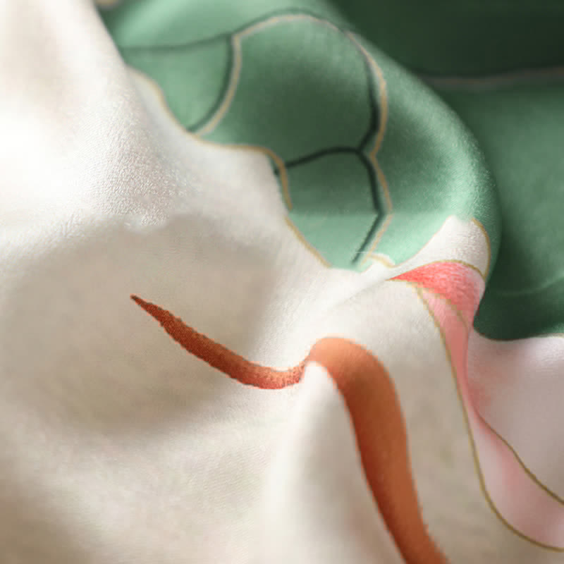 Irregular Lotus Print Short Sleeve Chiffon Lapel Shirt