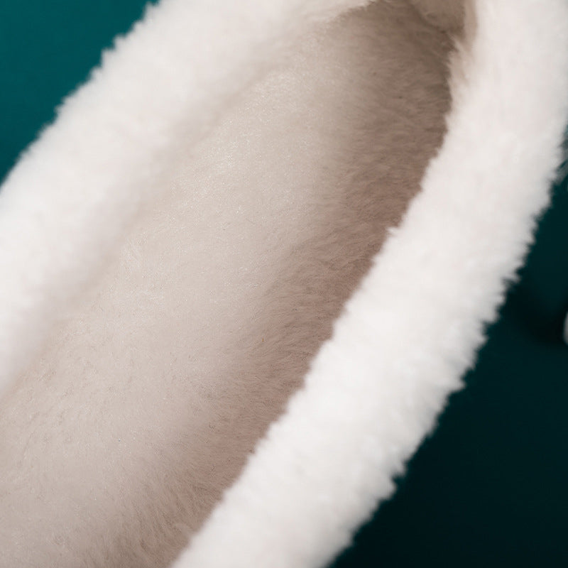 Kawaii Embroidery Wave Pearl Fuzzy Trim Flats Shoes