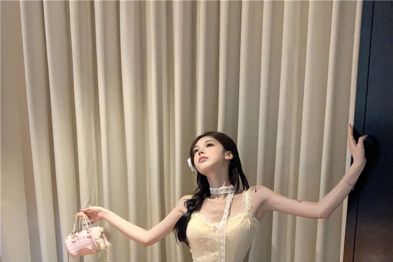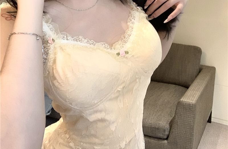 Spaghetti Strap Floral Lace Mini Bodycon Dress
