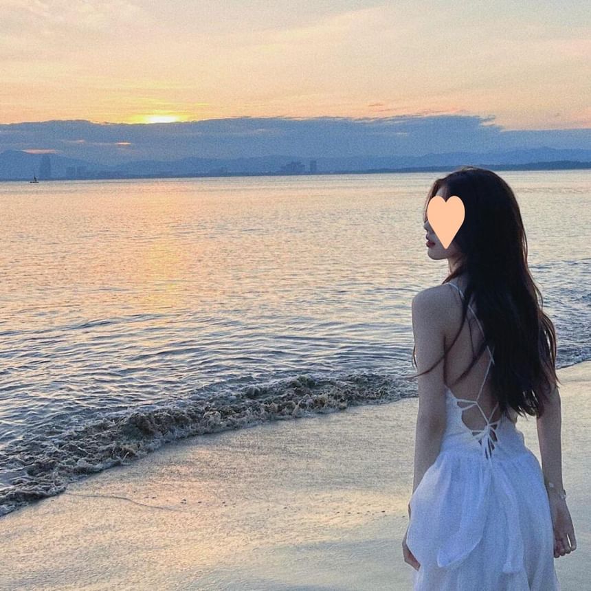 Lace-Up Sundress Plain Maxi Spaghetti Back Open Strap