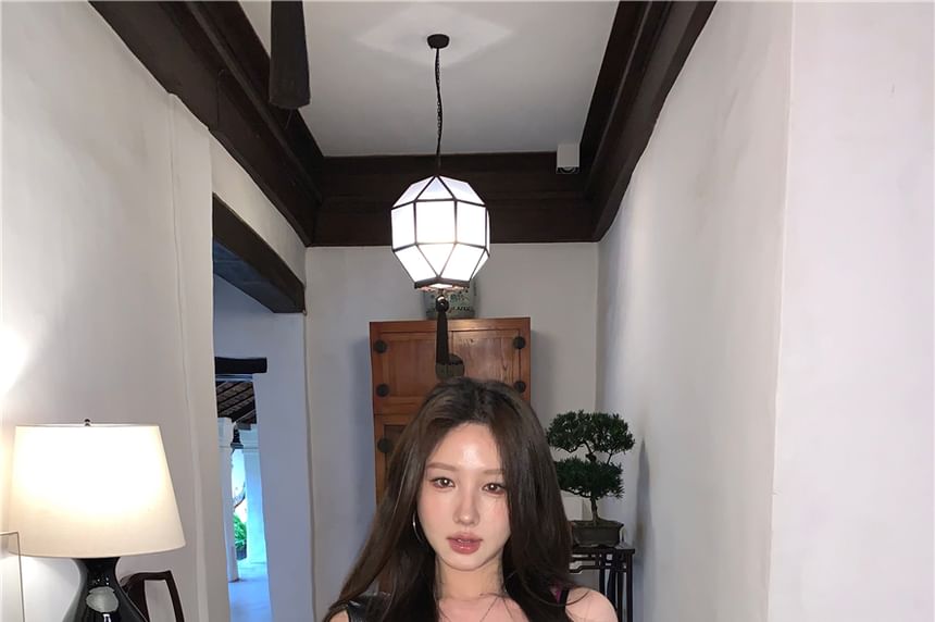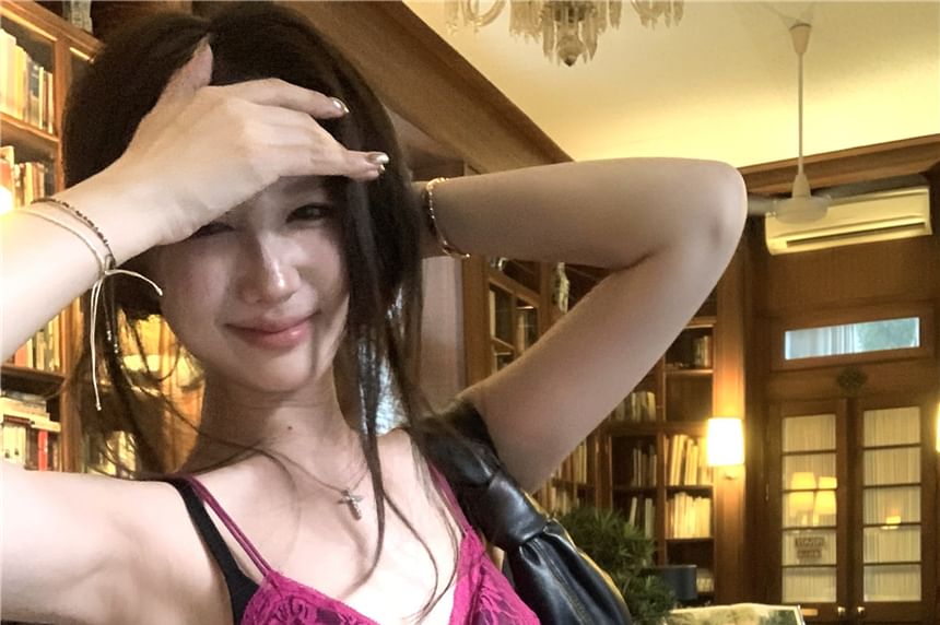 V-Neck Plain Bow Lace Camisole Top