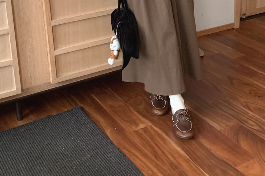 Lantern Sleeve Round Neck Plain Midi A-Line Dress