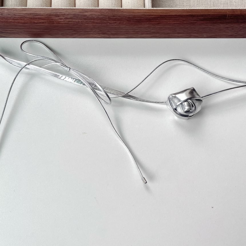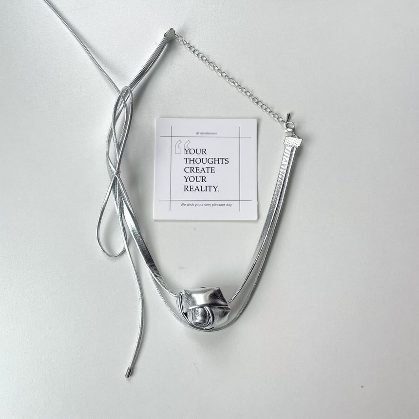 Layered Floral Bow Leather Choker Faux