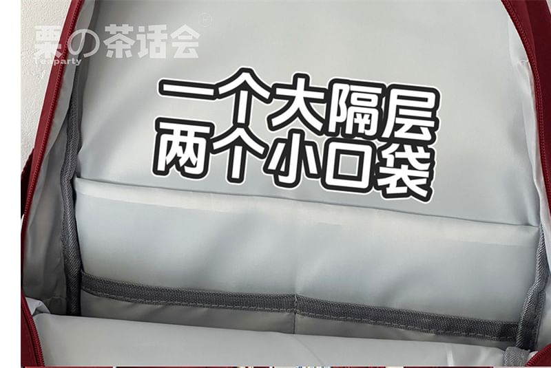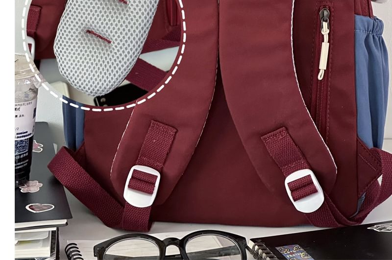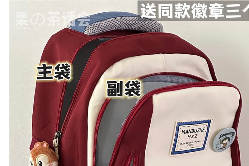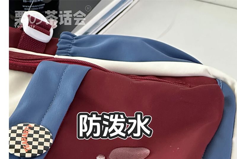 Lettering Color Block Backpack / Bag Charm / Set