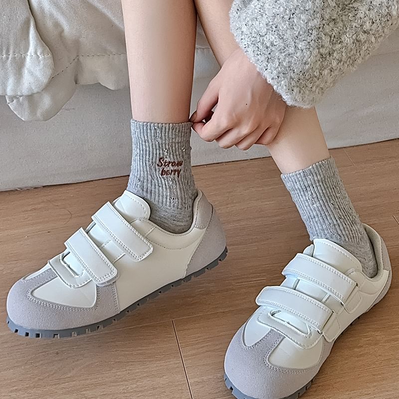 Lettering Embroidered Distressed Socks