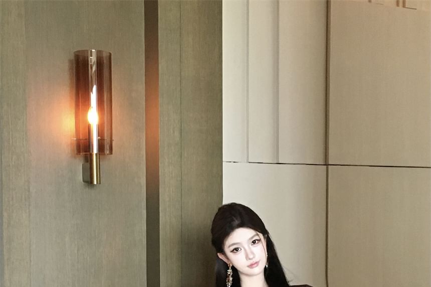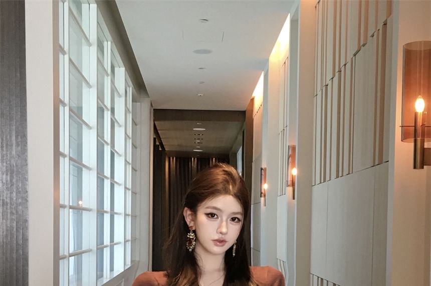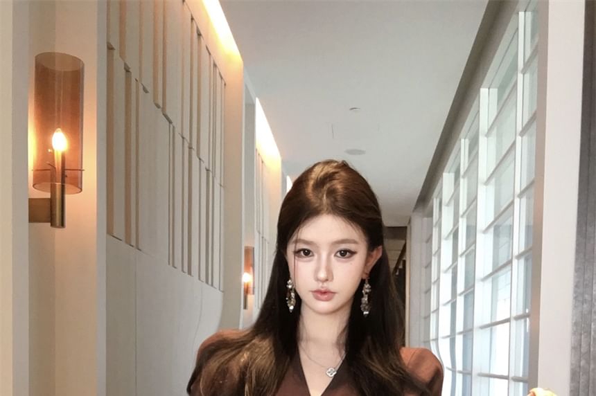 Long Plain Sleeve Wrap Crop V-Neck Blouse