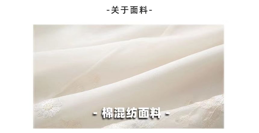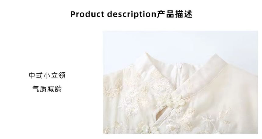 Long-Sleeve Band Collared Embroidered Midi A-Line Dress