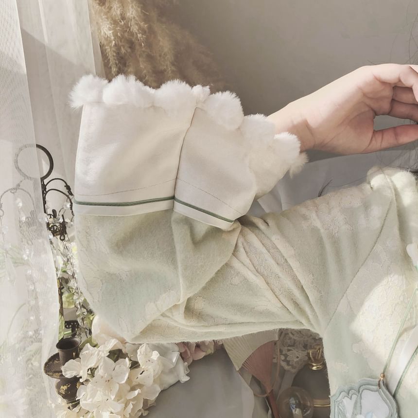 Long-Sleeve Collared Floral Midi Qipao / Embroidered Vest / Set