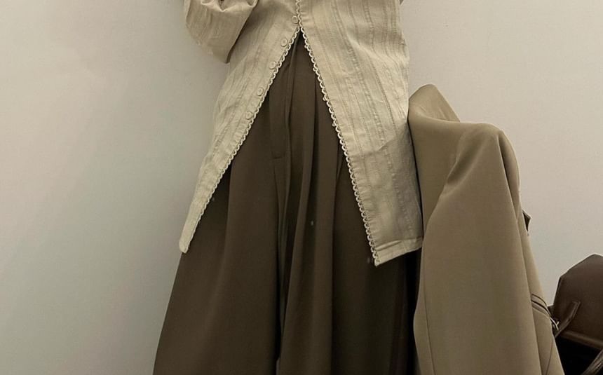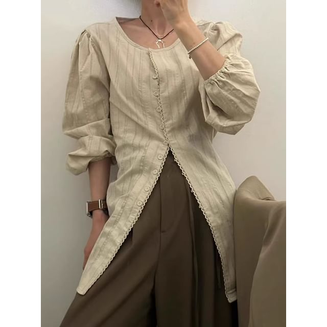 Long Sleeve Crew Neck Striped Blouse