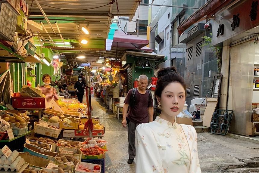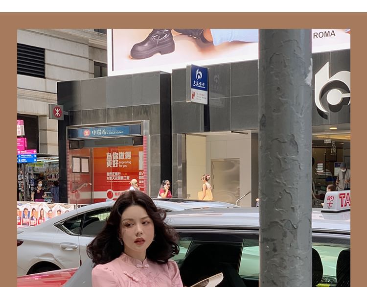 Long-Sleeve Frog Buttoned Midi Qipao Dress