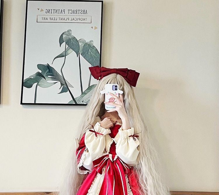 Lolita Long-Sleeve Mock Two-Piece Lace Trim A-Line Dress / Headpiece / Set