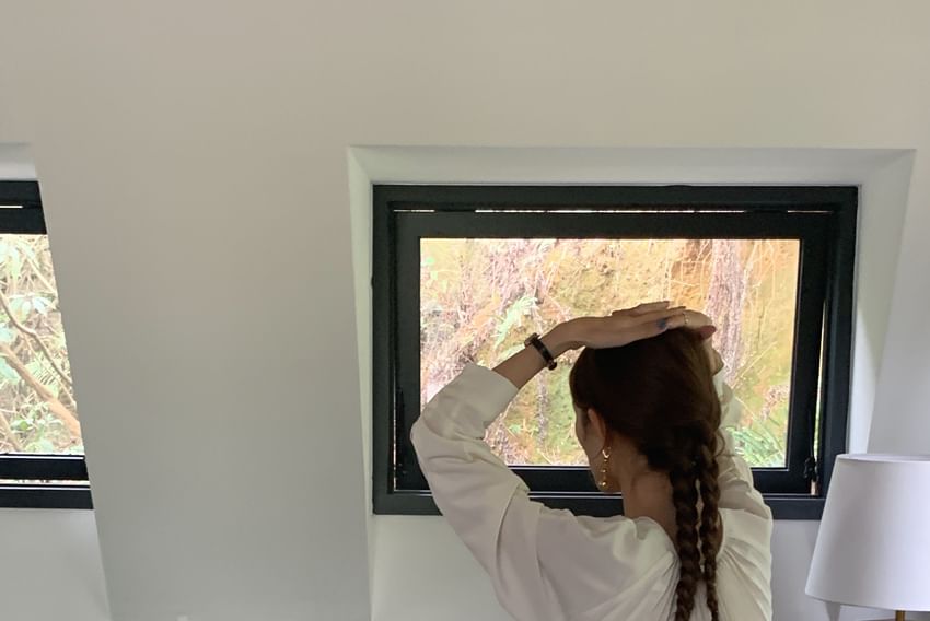 Long Sleeve Round Neck Plain Accordion Pleated Tie Front Maxi A-Line Dress
