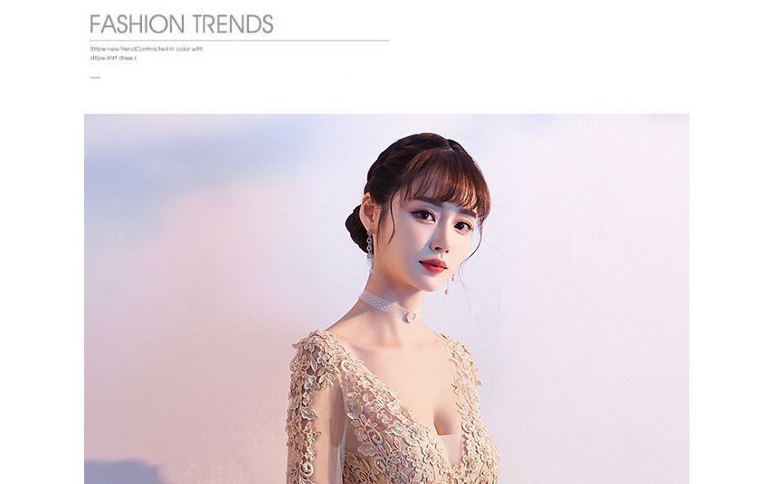 Long-Sleeve V-Neck Lace Mermaid Evening Gown