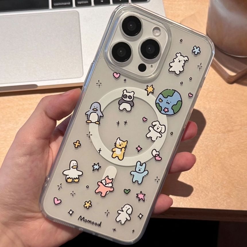 Magnetic Set Animal Earth MagSafe) Holder Case with (Compatible Card / Phone
