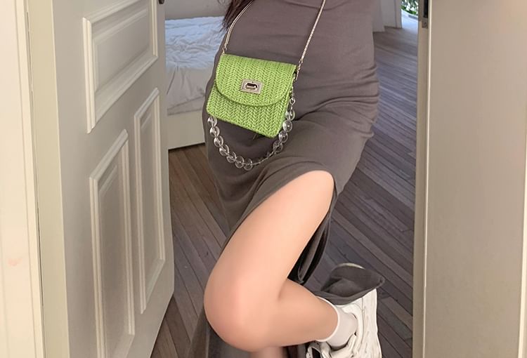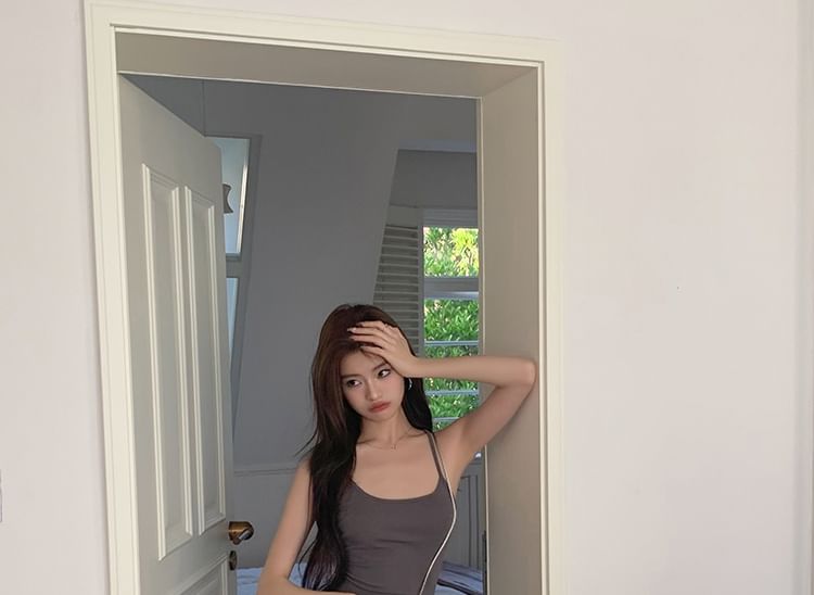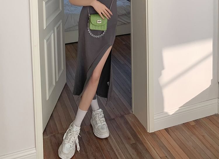 Spaghetti Strap Scoop Neck Plain Open Back Slit Midi Mermaid Dress