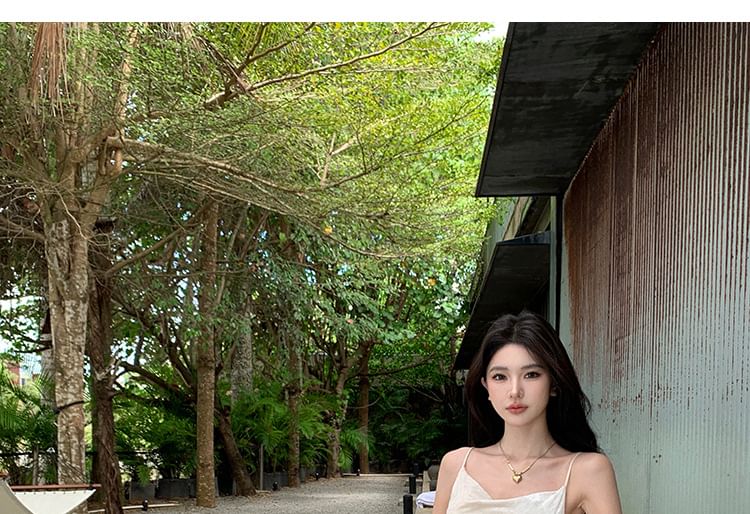 Spaghetti Strap Cowl Neck Plain Maxi Mermaid Dress