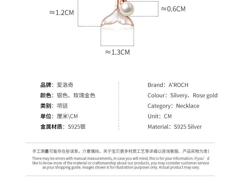Mermaid Tail Shell Faux Pearl Pendant Sterling Silver Necklace