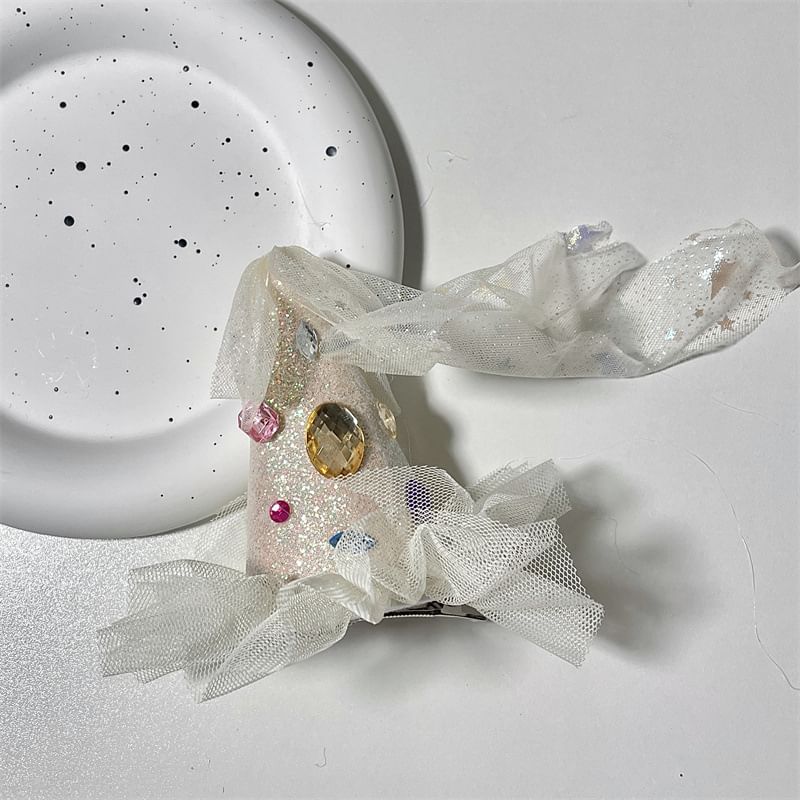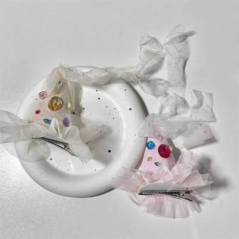 Rhinestone Mesh Party Hat Hair Clip