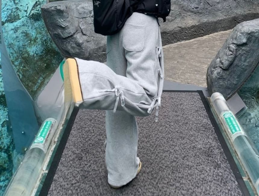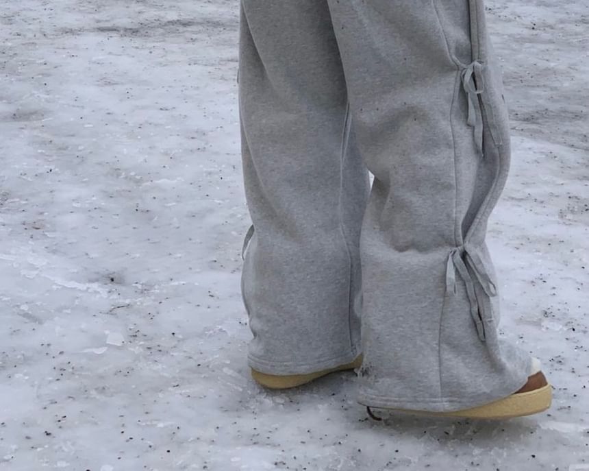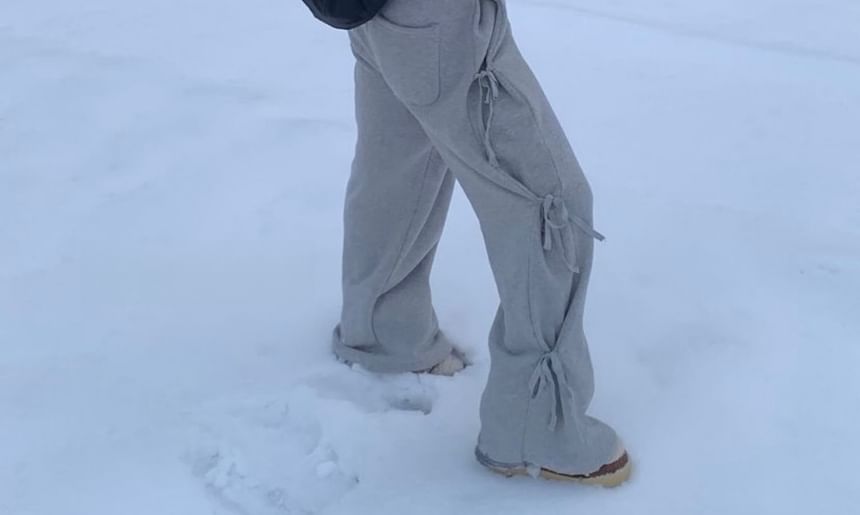 Mid Rise Plain Bow Wide Leg Pants
