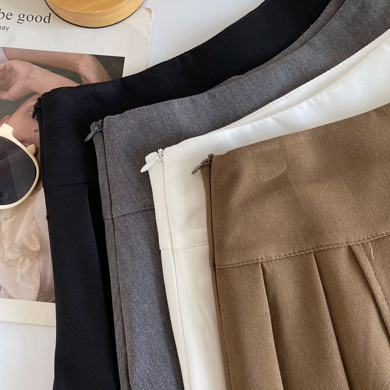 Mid Rise Plain Pleated Mini A-Line Skirt