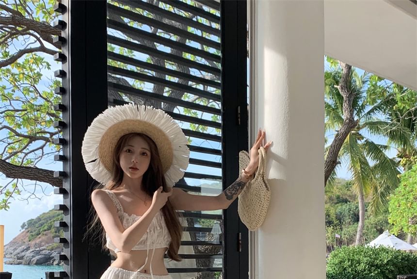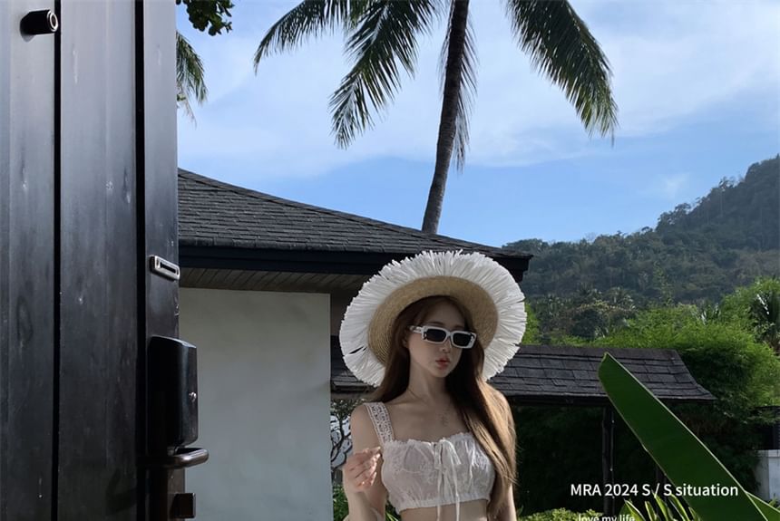 Mid Waist Plain Lace Trim Maxi A-Line Skirt