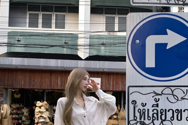 Mini Button-Up Dress Embroidered Floral Puff-Sleeve Tie-Side A-Line