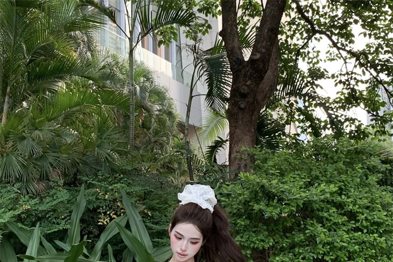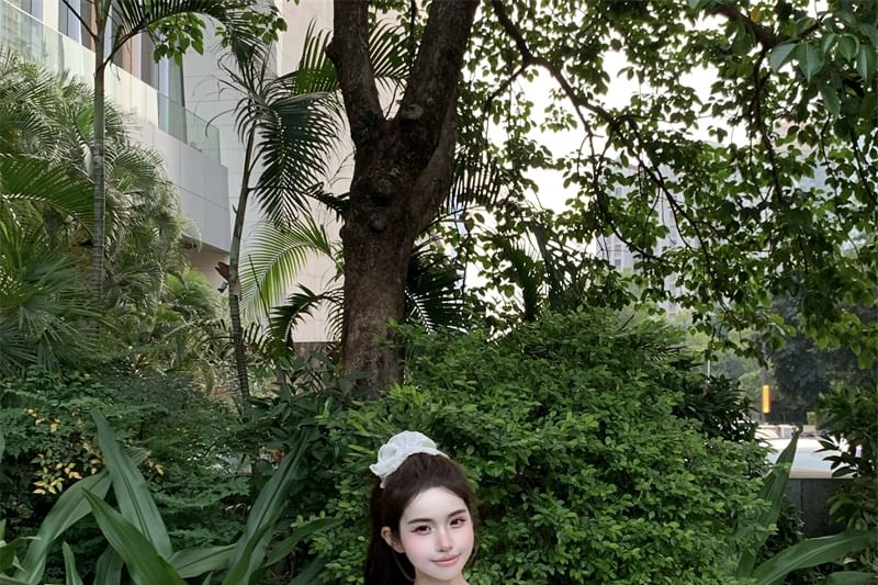Mini Sleeveless / Drawstring Plain One Skirt Tie-Up Top Waist Shoulder A-Line