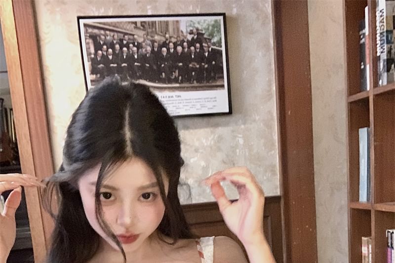 Mini Trim Spaghetti Bodycon Lace Bow Strap Plaid Dress