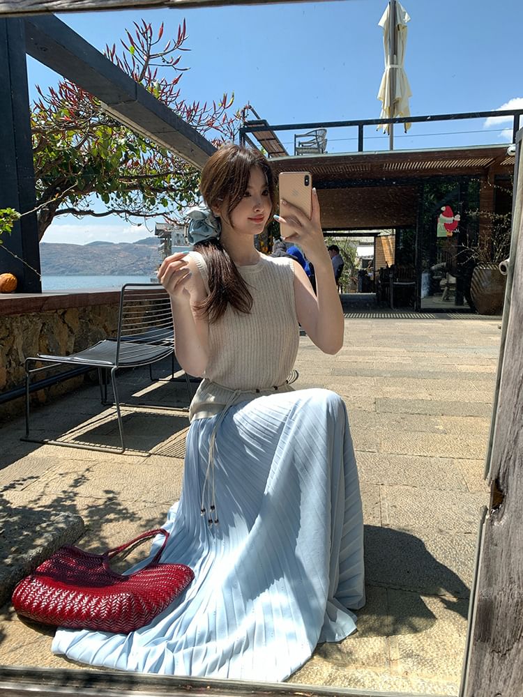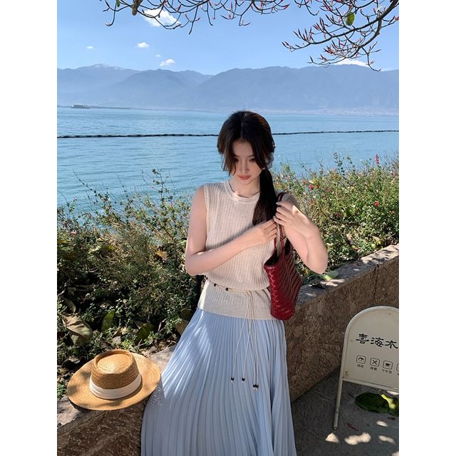 Sleeveless Crew Neck Plain Ribbed Knit Top