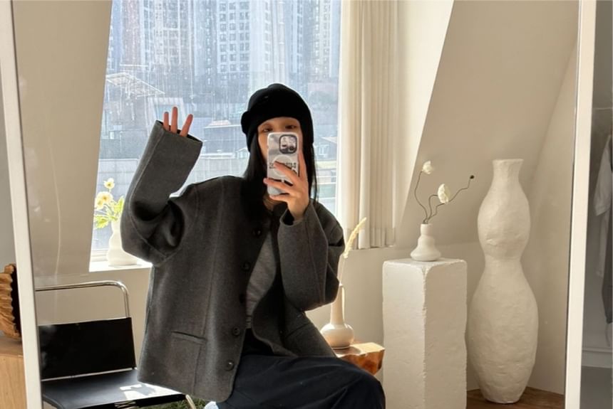 Plain Button-Up Woolen Jacket