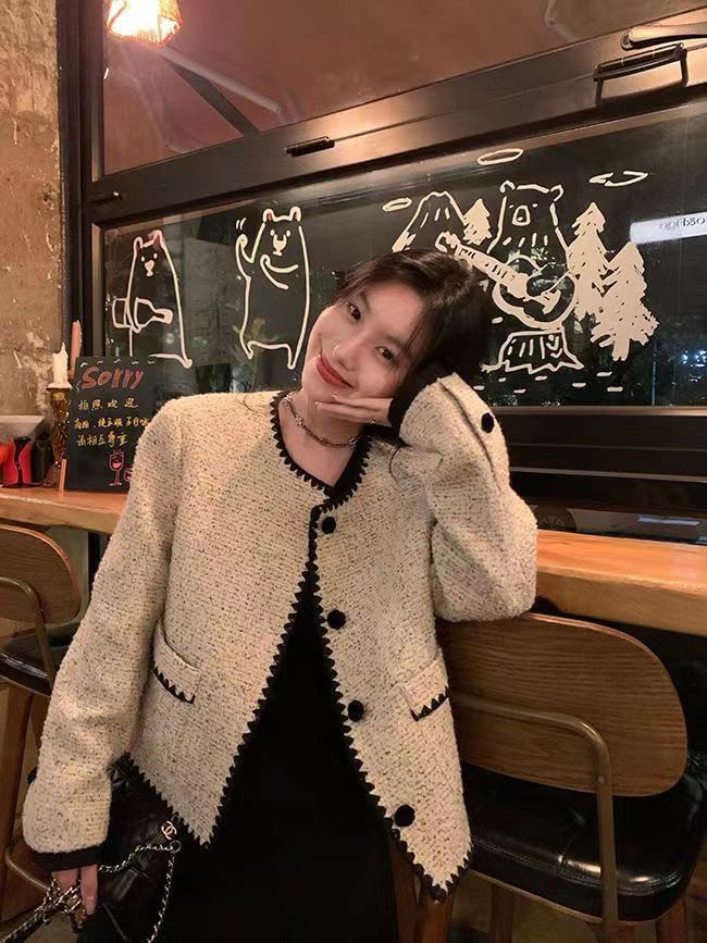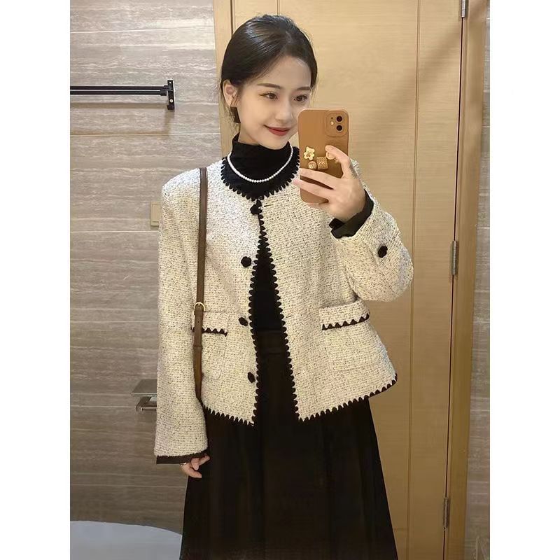 Round Neck Contrast Trim Button Jacket
