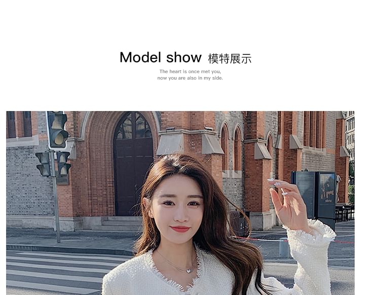 Round Neck Plain Tassel Trim Tweed Cropped Jacket