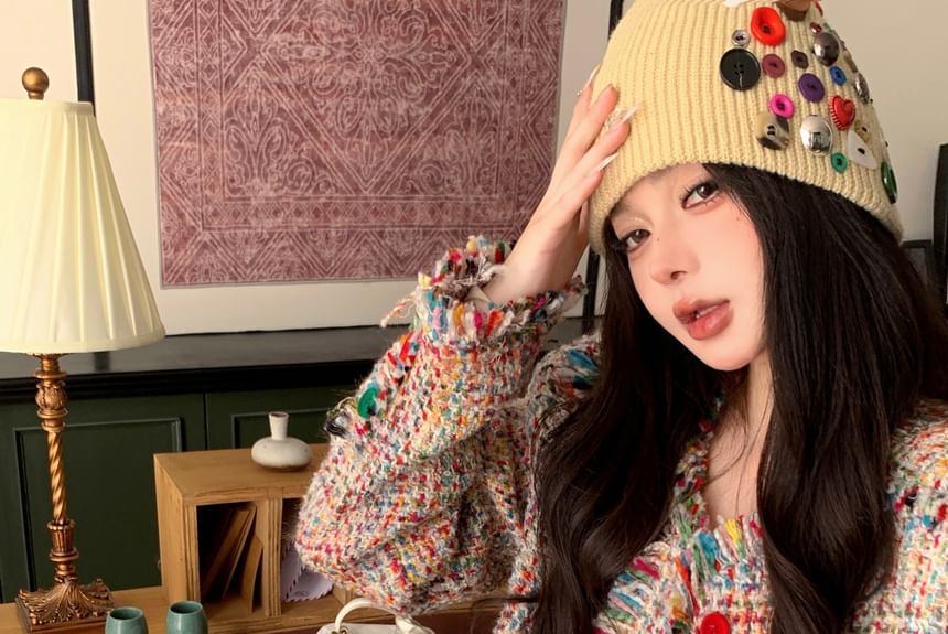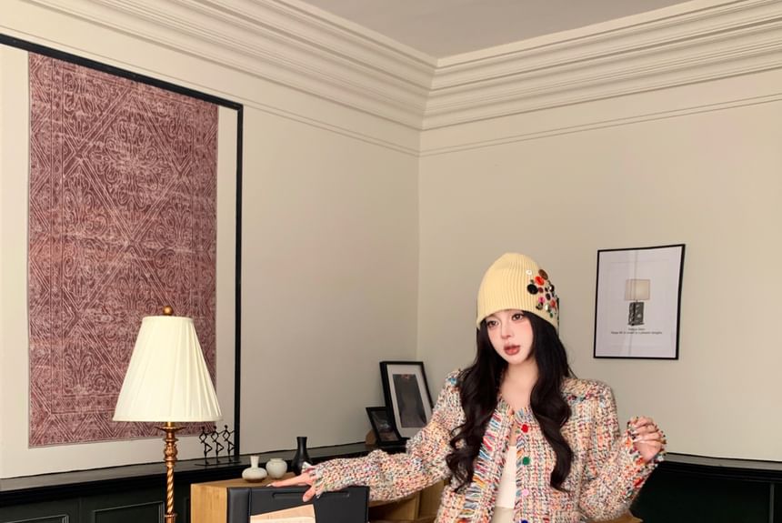 Tweed Tassel Trim Button-Up Jacket