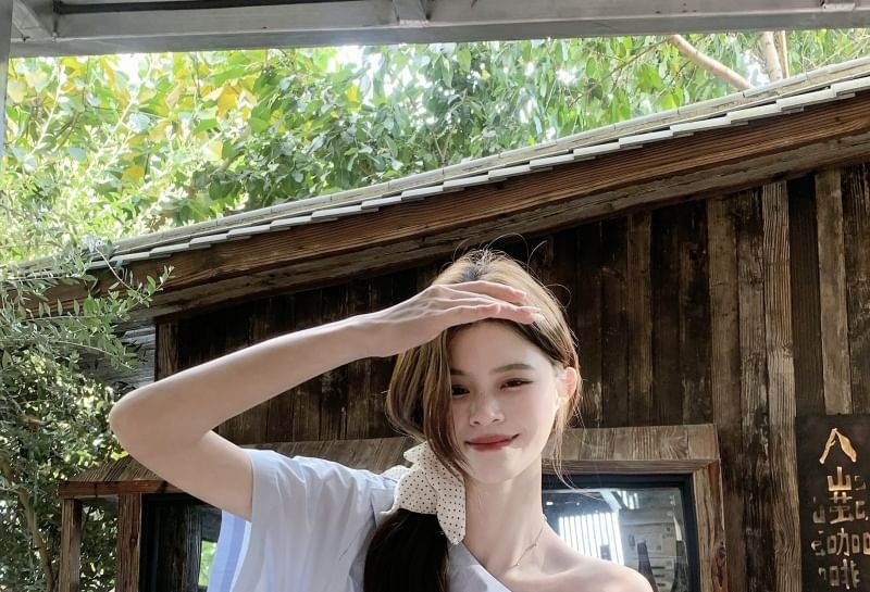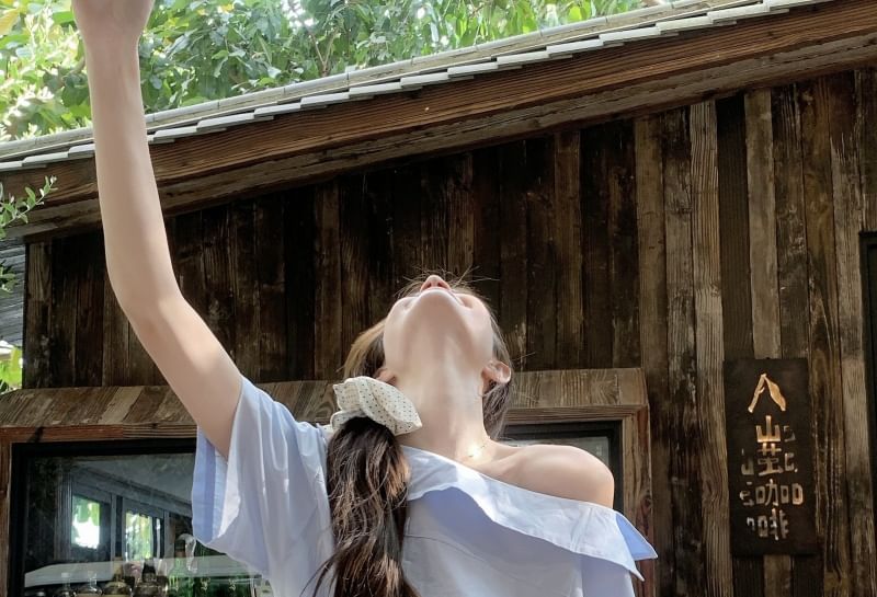 One Belt + Blouse Shoulder Plain Sleeveless Set: