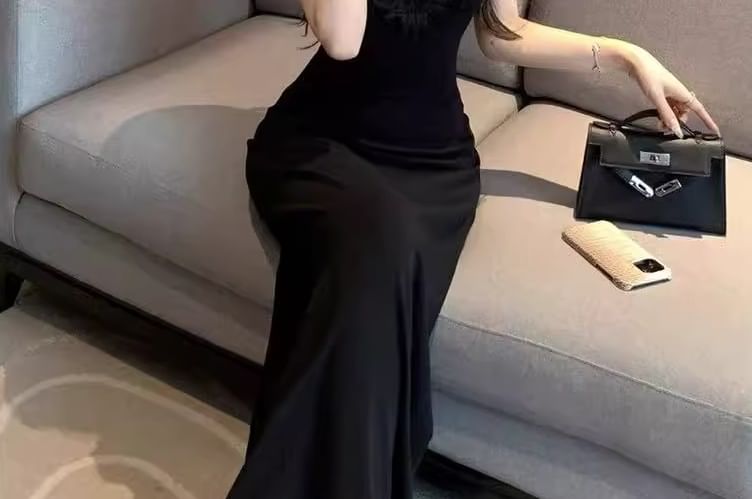 Sleeveless V-Neck Lace Panel Maxi Mermaid Dress