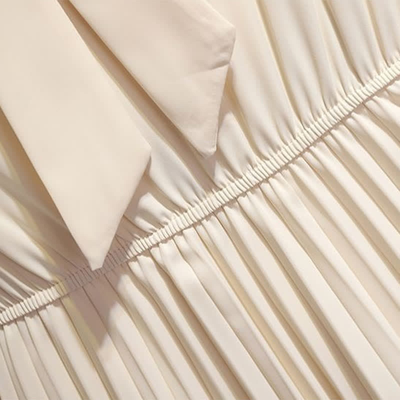 Plaid Print Pearl Vest Lace Up Long Sleeve Pleated Shirt Dress