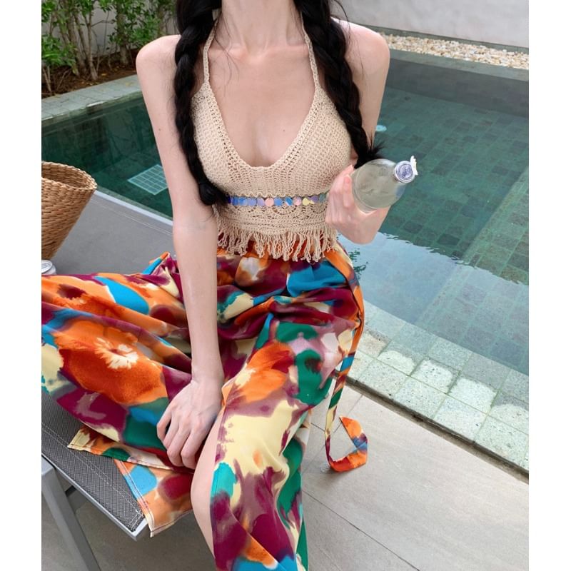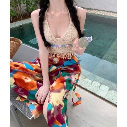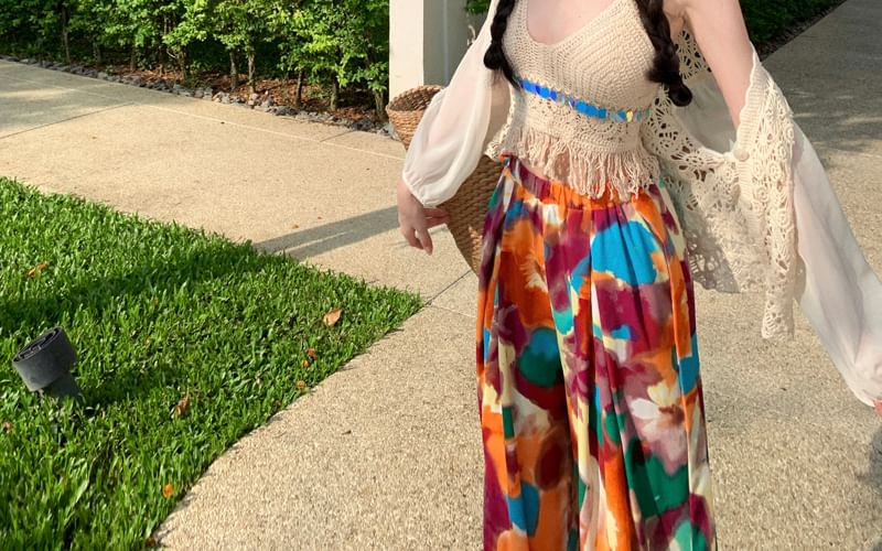 Plain Button-Up Jacket / High Rise Floral Print Wide Leg Pants