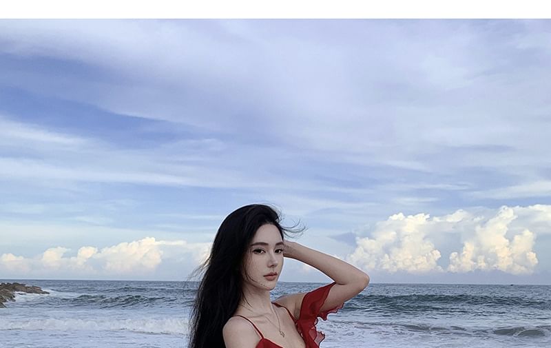 Cold-Shoulder Plain Ruffle Asymmetrical Maxi Sundress