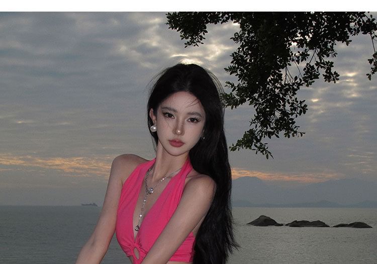Plain Neck Midi Dress Halter Cutout Bodycon