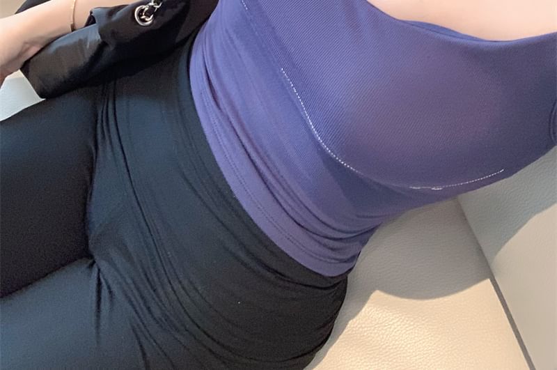 Plain Padded Pants Top Camisole Rise Flared Mid Rhinestone /