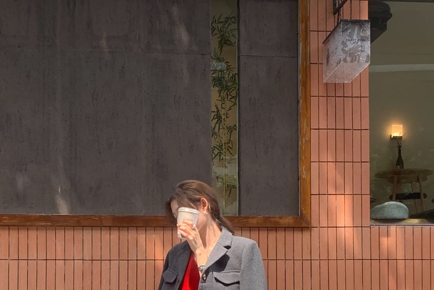 Plain Pocket Detail Single-Breasted Coat