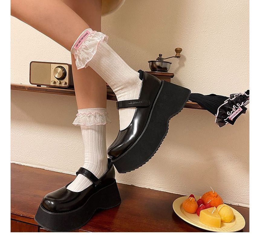 Plain Ribbed Mesh Ruffle Socks