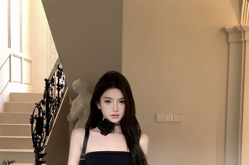 Plain Ruffle Asymmetrical Mini Sheath Tube Dress