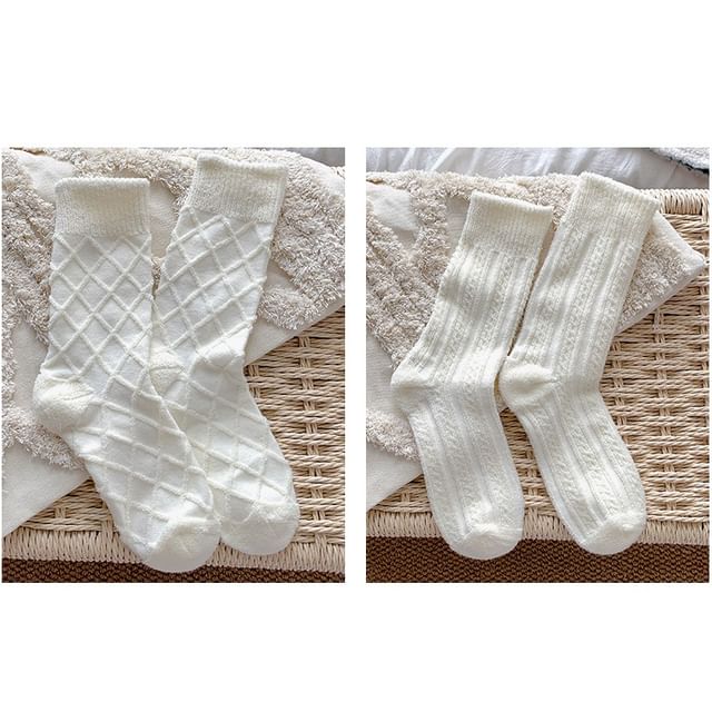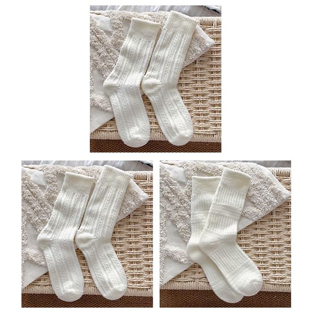 | Color: | 3 Pairs - Vertical Stripes & Cable Knit & Fence - White |