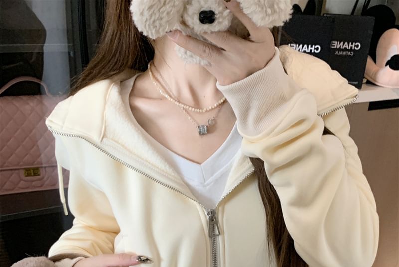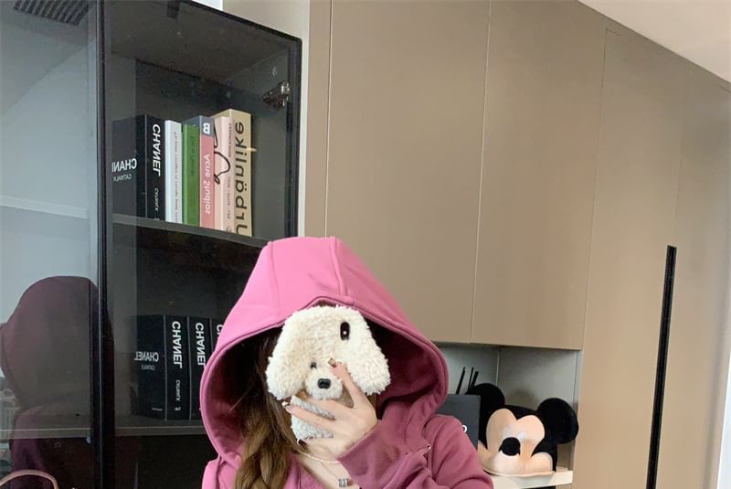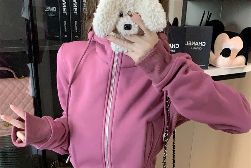 Plain Zip-Up Crop Hoodie / Drawstring Waist Striped Wide Leg Pants
