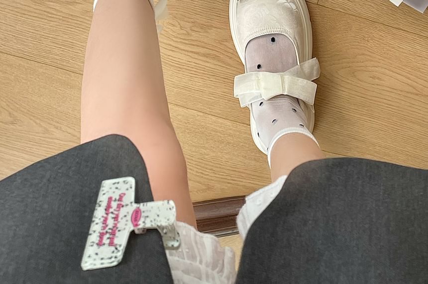 Platform Adhesive Strap Floral Jacquard Bow Accent Mary Jane Shoes