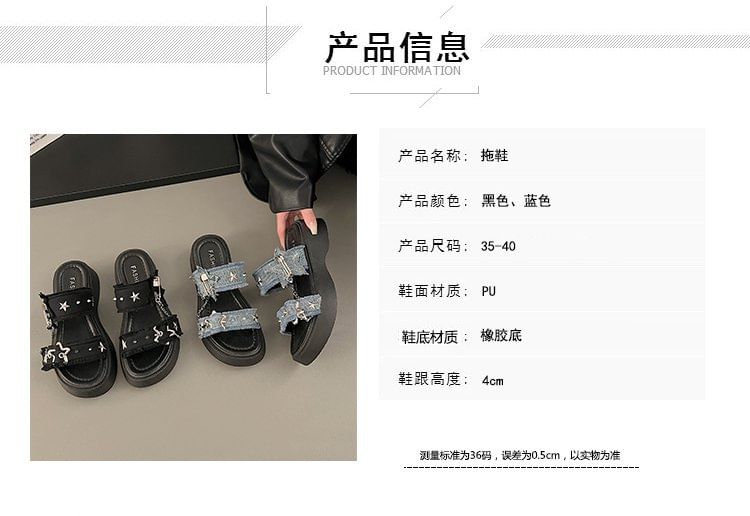 Platform Star Buckled Denim Slide Sandals